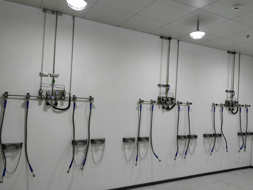 8.氣瓶間內的實驗室氣體氧氣瓶與氣壓控制器內主要采用SS316L直流電黑色金屬軟水管對接無融入。直流電軟水管為韌性軟水管,以擔保對接的不便性。并自導安全防護網鋼纜,避免傾向的情況下,氧氣瓶閥影響等的現象造成 的直流電“抽鞭”事故原因。氣壓控制器與途徑的對接方式方法為雙環卡套。