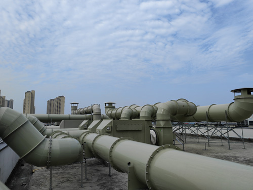 檢測室氣體 → 抗逆性炭濾過器 → 引送風機 → 擺放